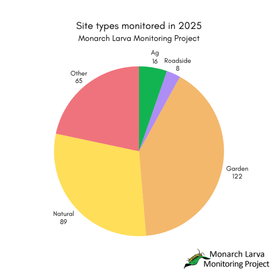 In 2025, MLMP volunteers monitored 2948 times, and looked at 237,049 milkweed plants! Thank you to everyone who contributed to these impressive numbers.